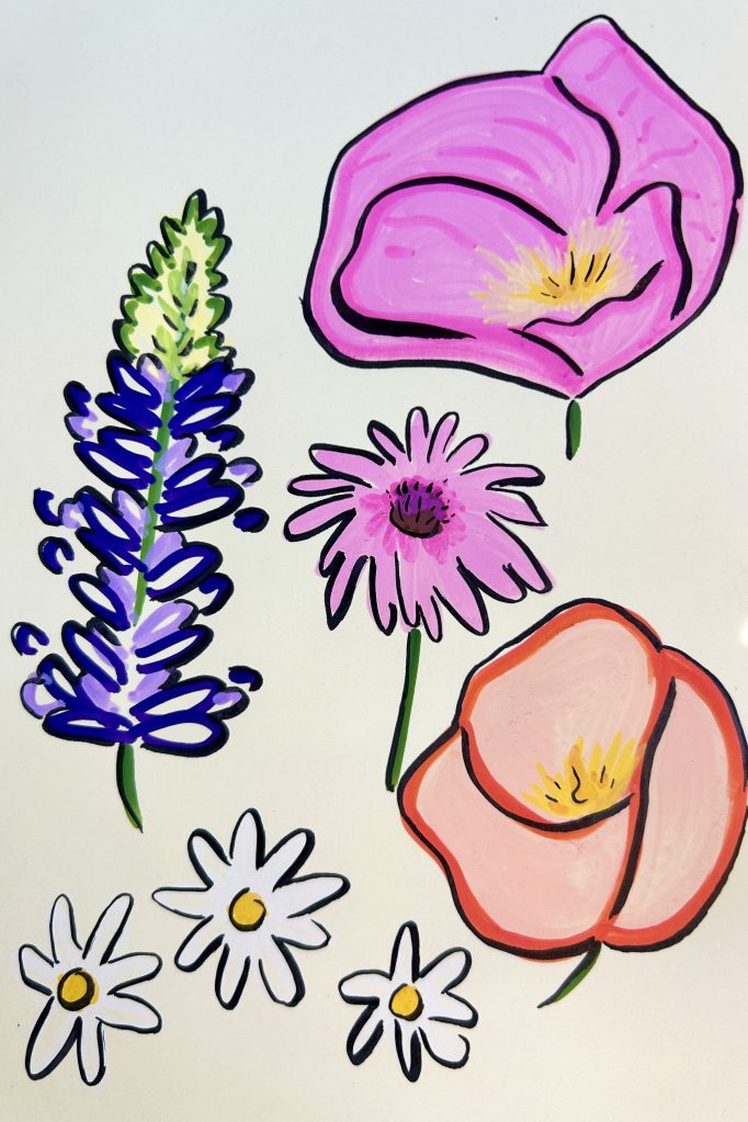 Gouache and pen on paper, artwork by Katherine Elizabeth Jackson